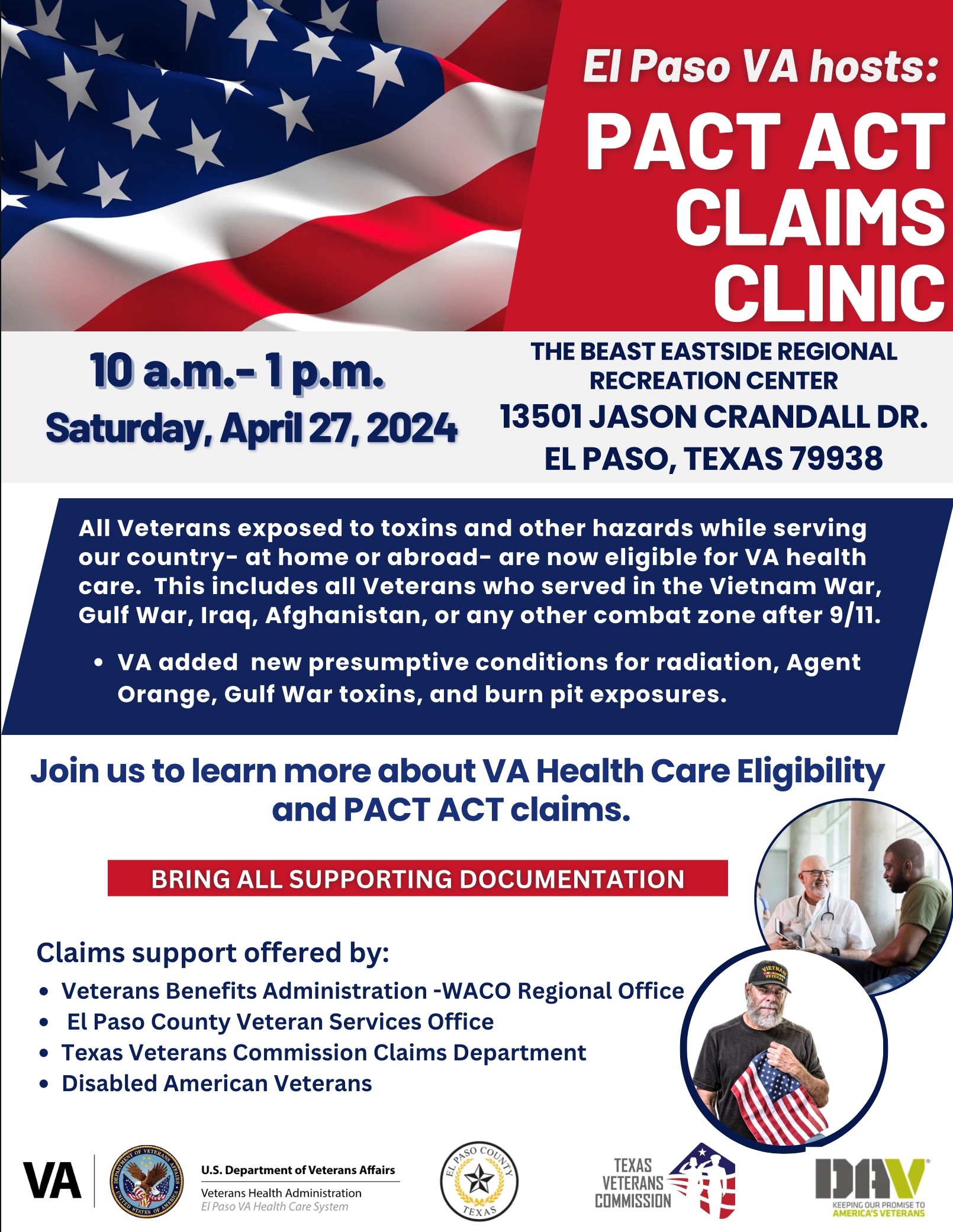 - Expands and extends eligibility for VA health care for Veterans with toxic exposures and Veterans of the Vietnam, Gulf War, and post-9/11 eras