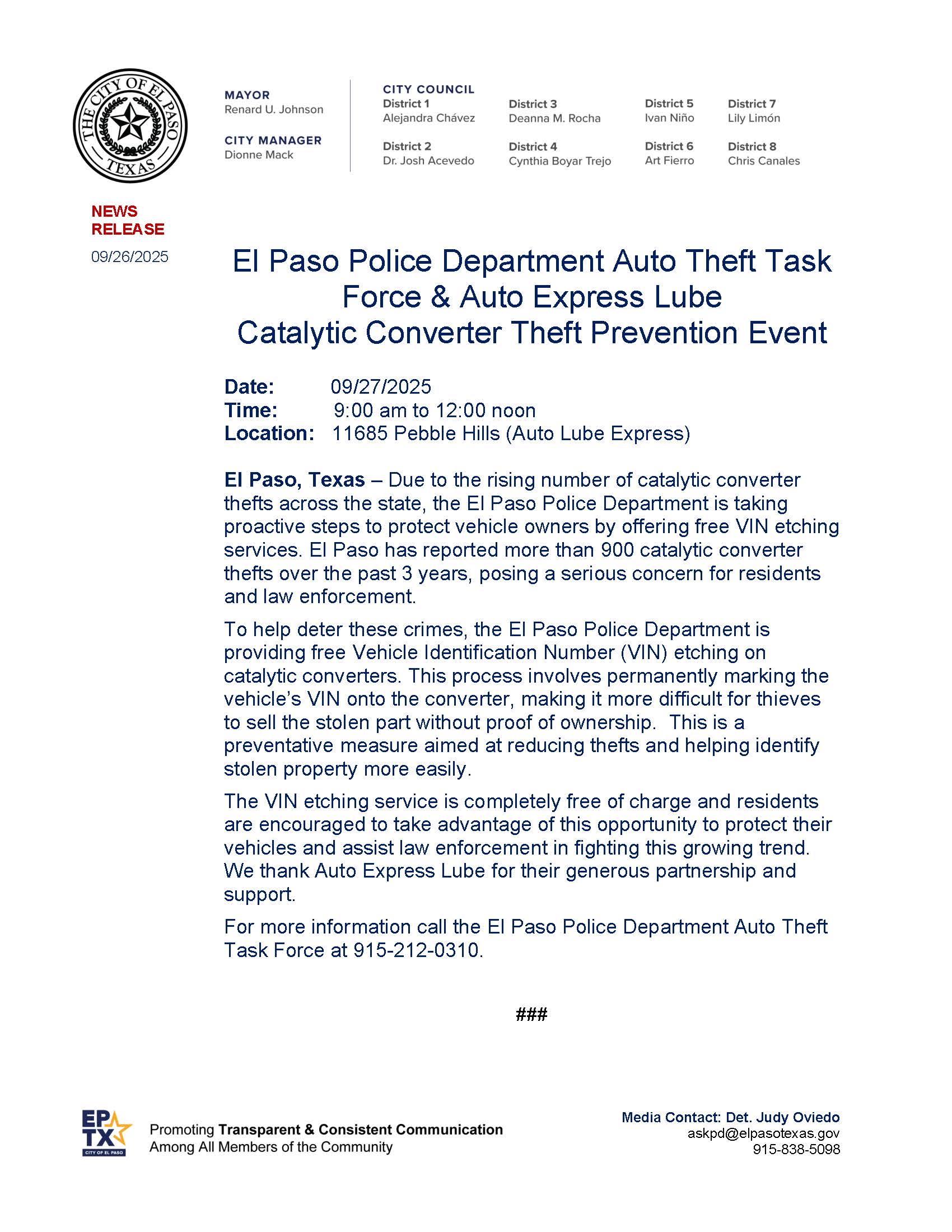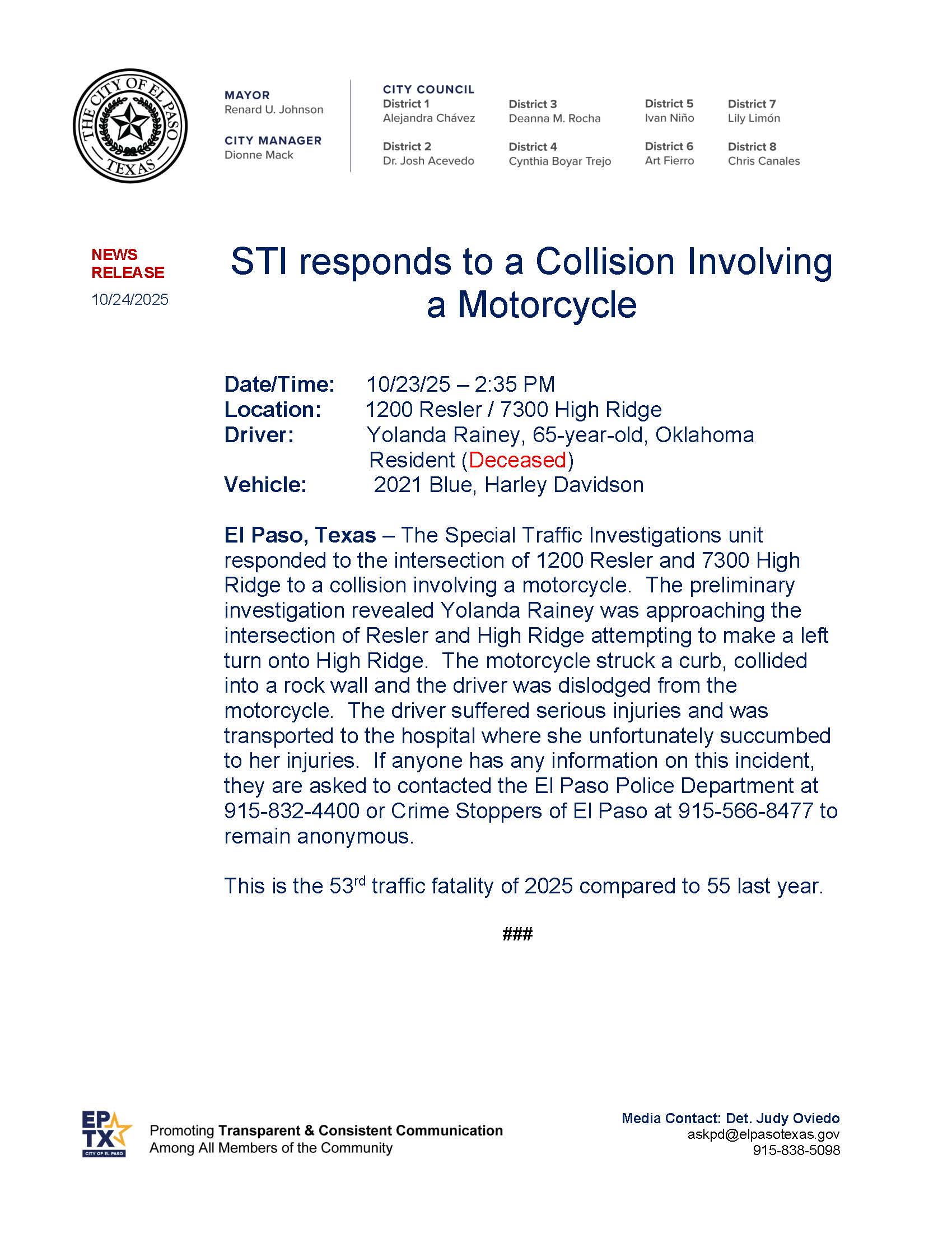 For Animal Services, El Paso International Airport, El Paso Museum of Art, and Sun Metro releases, please visit their respective websites.