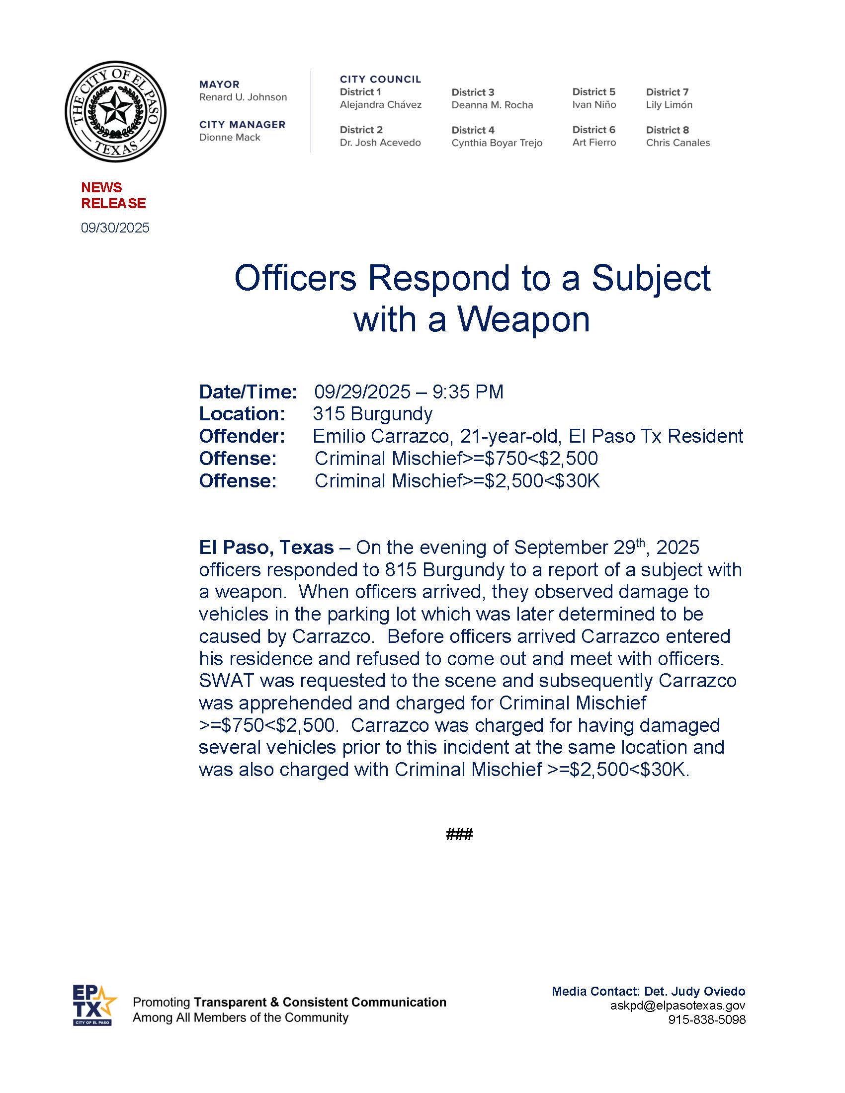 El Paso Police - Sep 30, 2025