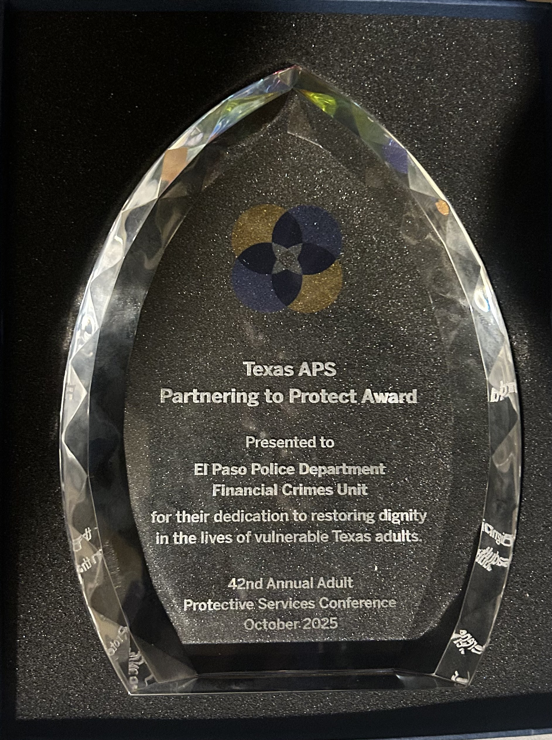 Detectives from the El Paso Police Department’s Financial Crimes Unit were recognized at this year’s Texas Adult Protective Services...