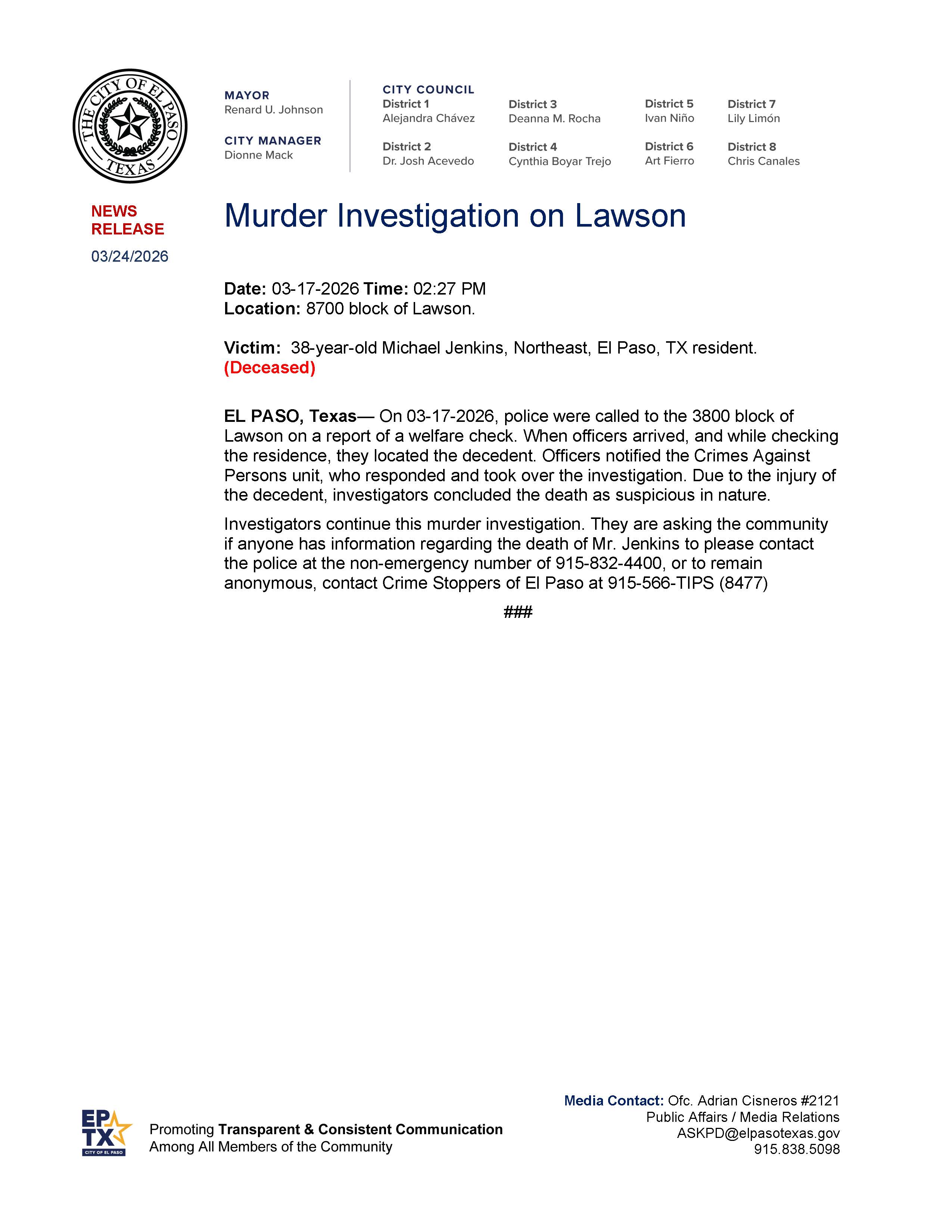 El Paso Police - Mar 27, 2026