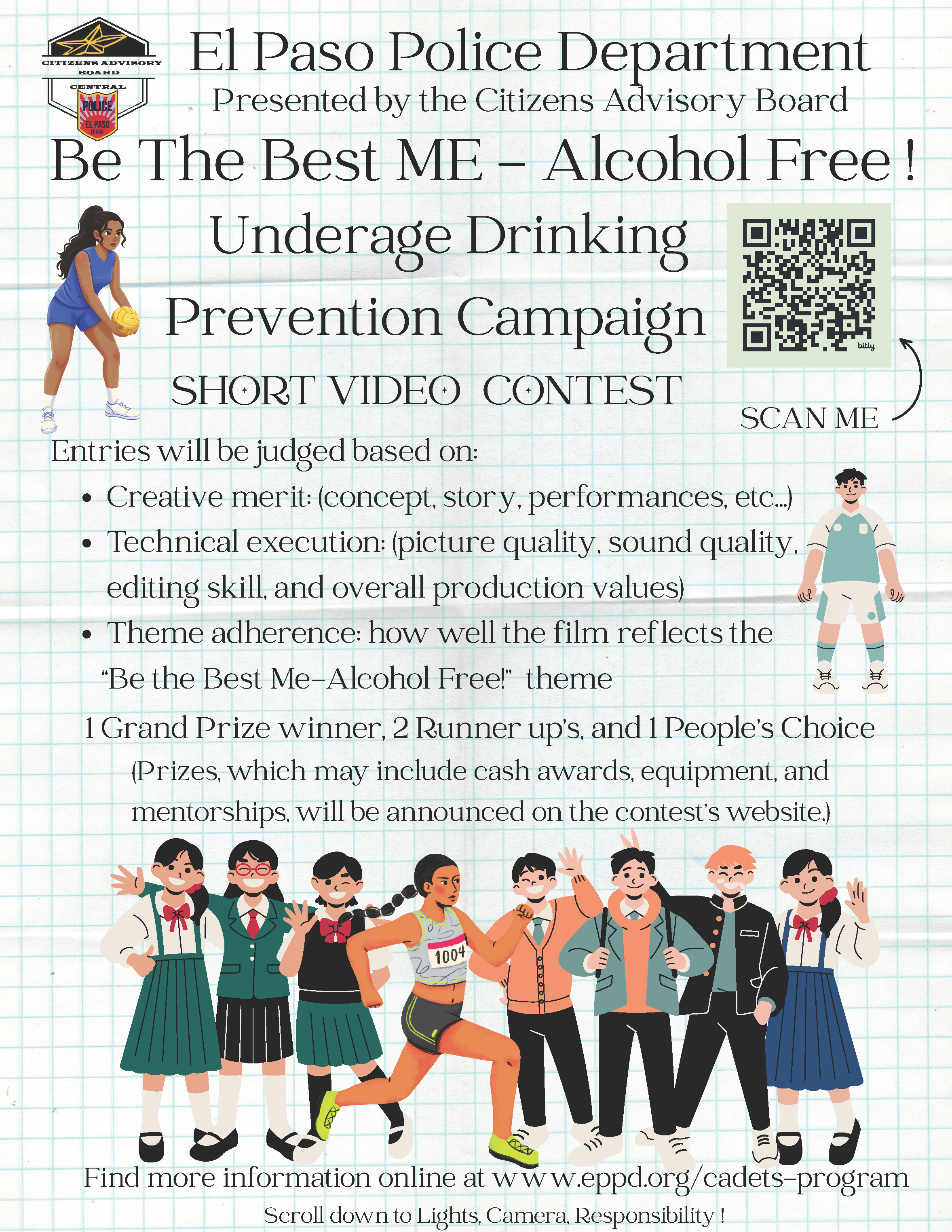 The El Paso Police Department is inviting local youth to participate in the “Be the Best ME–Alcohol Free” Underage Drinking Prevention