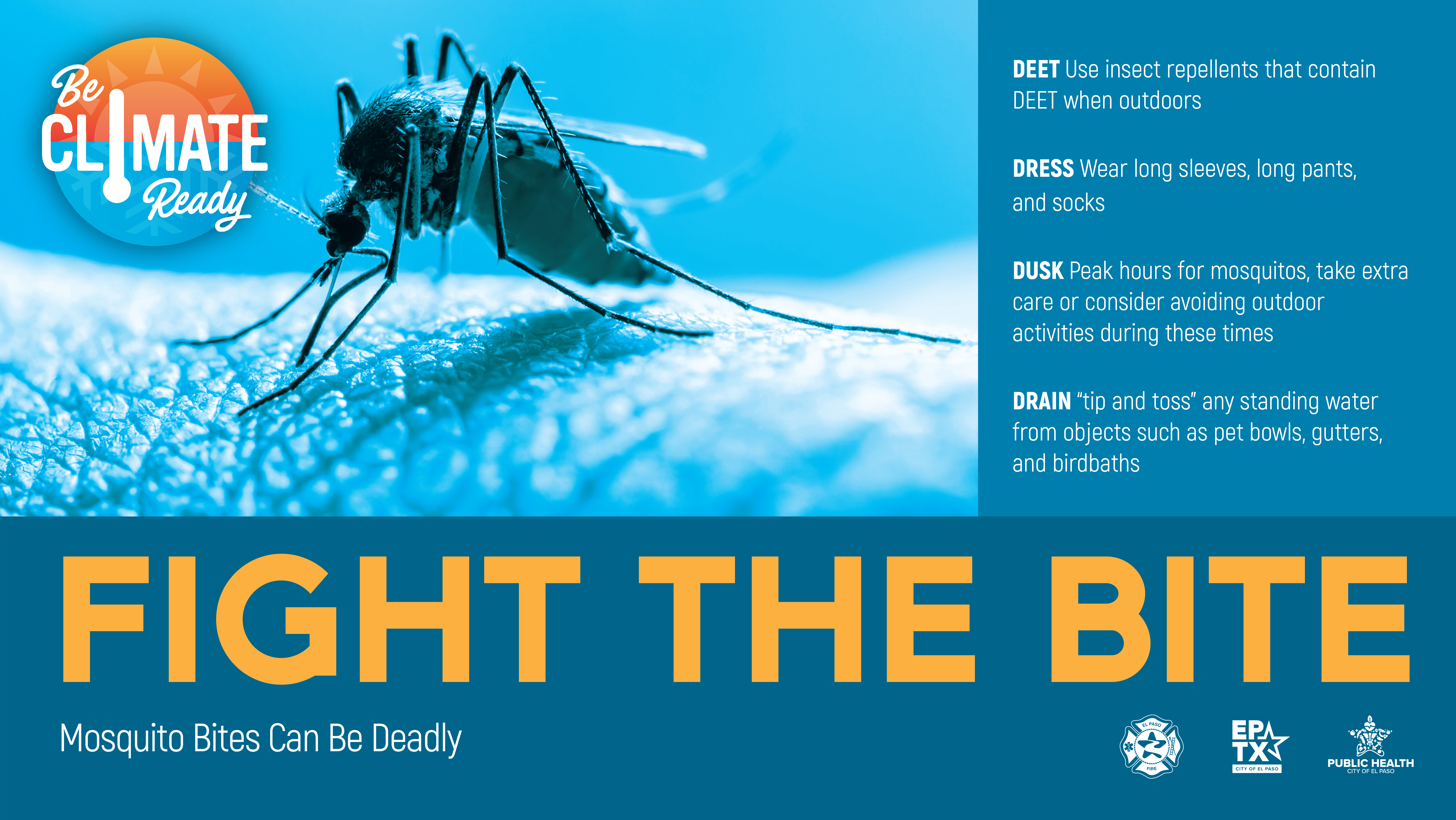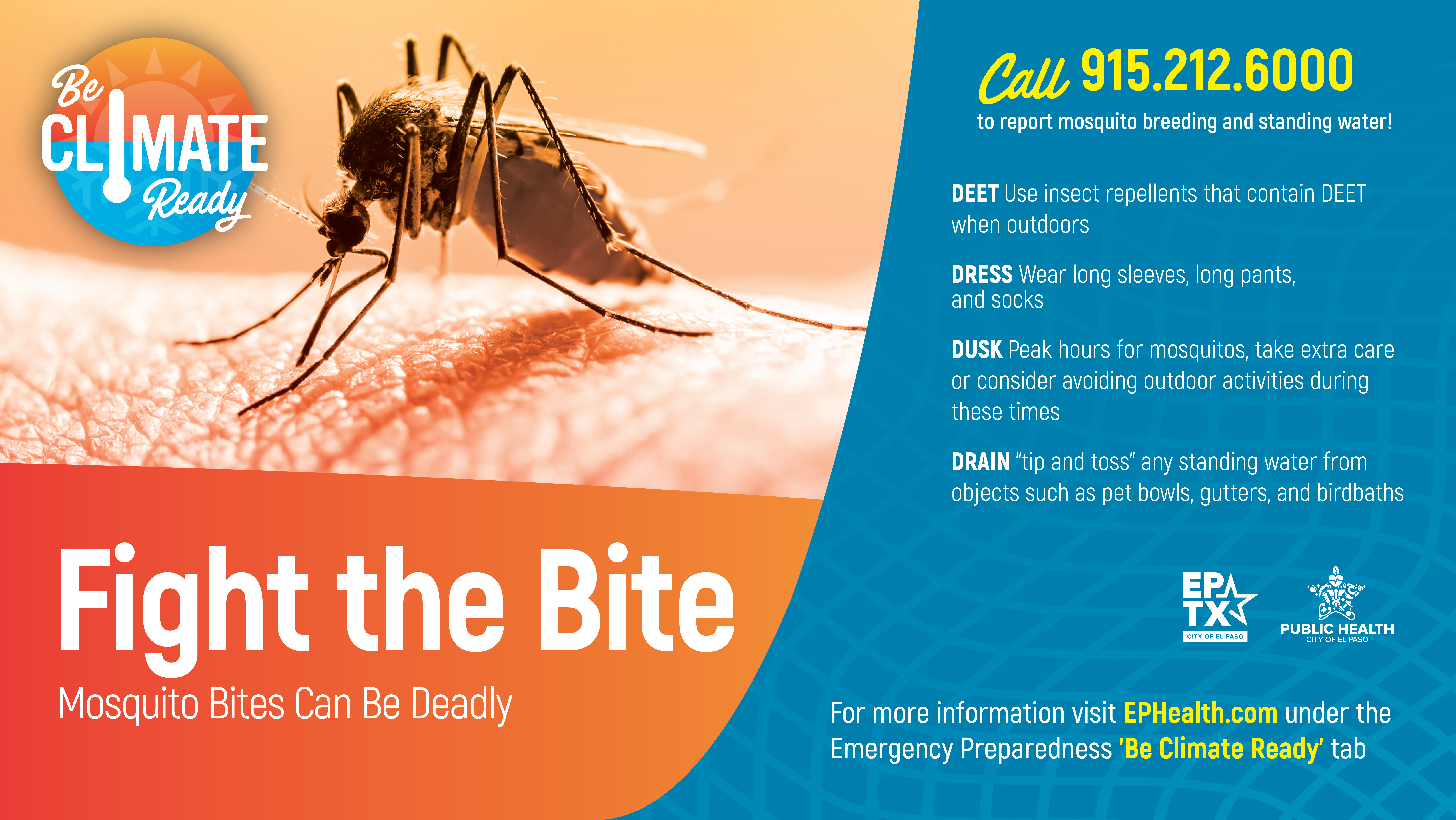 The City of El Paso Department of Public Health is urging residents to take proactive steps to prevent mosquito bites and eliminate mosquito breeding grounds, as the community enters peak mosquito season.