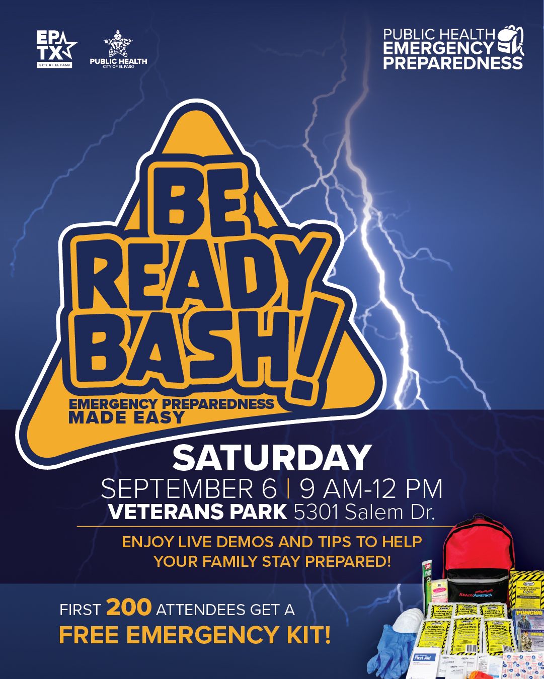 In recognition of National Preparedness Month, the Department of Public Health and the Office of Emergency Management (OEM) invites the community to the “Be Ready Bash” from 9 a.m. to 12 p.m. Saturday, September 6, at Veterans Park, 5301 Salem Dr.
